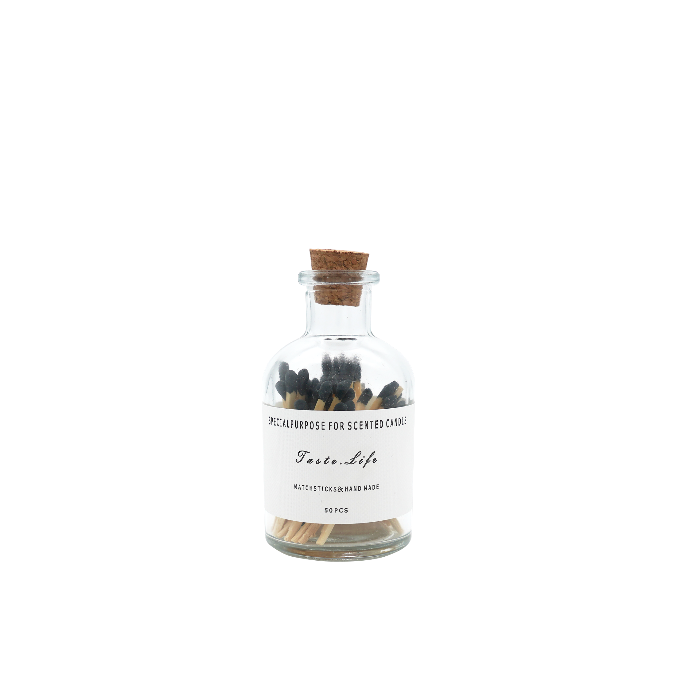 The Little Ruban matches in a chic apothecary bottle are the perfect candle companion.Match bottles are stylishly topped with a cork stopper and the striker is on the side of the jar. Each jar contains 50 matchsticks.