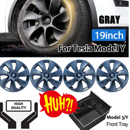 Tesla Y hub cap 4 gray and fit Model 3/Y central control front storage box push-pull